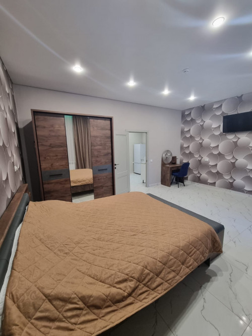 Отдохните с комфортом в уютном номере в нашей гостинице! Двуспальная кровать обеспечит крепкий сон, а собственная душевая – свежесть и удобство. Готовьте любимые блюда на оборудованной кухне, а для создания идеального образа предусмотрен туалетный столик. Насладитесь свежим воздухом и живописным видом с собственного балкона! Идеальное сочетание уюта и функциональности для вашего незабываемого отдыха.